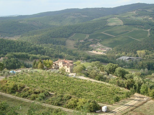 We drove all day with me acting as navigator, reading an Italian map and giving directions in Italian: “Sinestre, Francesco! Sinestre!” What a hoot. We got lost a few times and had great fun. And I saw some of the most beautiful scenery I have ever witnessed anywhere in my life. Tuscany is all rolling hills and valleys. The towns and villages tend to be on the top of the hills with the valleys reserved for agriculture. Vineyards, of course, are everywhere and stretch for as far as the eye can see.
