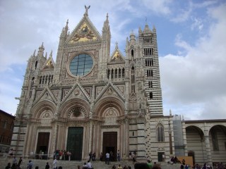 Saturday featured a visit to Siena, a medieval village situated on top of a mountain with a long and proud history. A rival of Firenze for 500 years, Siena is divided into 10 neighborhoods called contrado, each with its own flag, colors and mascot. Some of the mascots I saw were the snail, the fish, and the turtle. In the center of the city is Il Campo, which means literally, the field. For 500 years, since before Columbus raised anchor in Genoa, there has been horse racing around Il Campo. At the top of the city is Il Duomo, one of the most impressive cathedrals to be found anywhere in Europe.