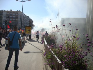 I watched about 10,000 French citizens take to the streets under the watchful eyes of perhaps a dozen policemen within my view. Some of the protesters lit highway flares and were whipping up the crowd amidst a display of fire and smoke. The cops just observed. No official action was taken.